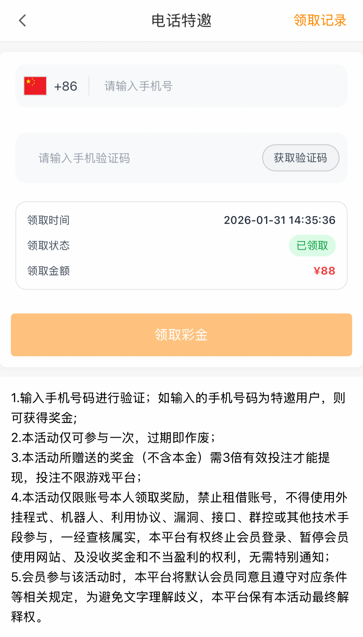 注册好优惠里自助领取彩金,3倍流水